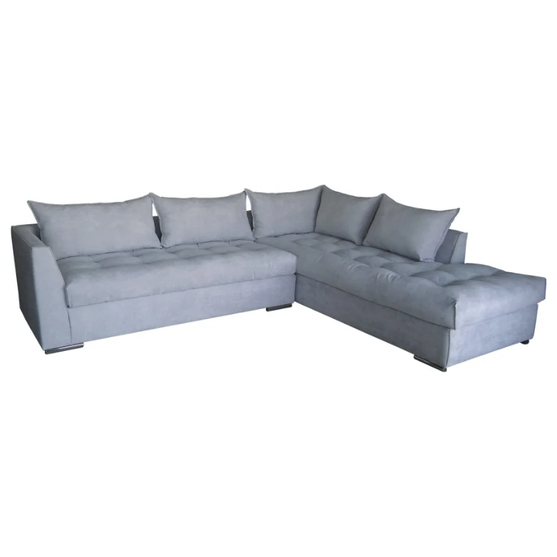 Γωνιακός καναπές με εξώγαζα και μαξιλάρι με τραβήγματα. Το ύφασμα, το χρώμα, οι διαστάσεις και η φορά του καναπέ μπορούν να αλλάξουν ανάλογα με τις ανάγκες σας.