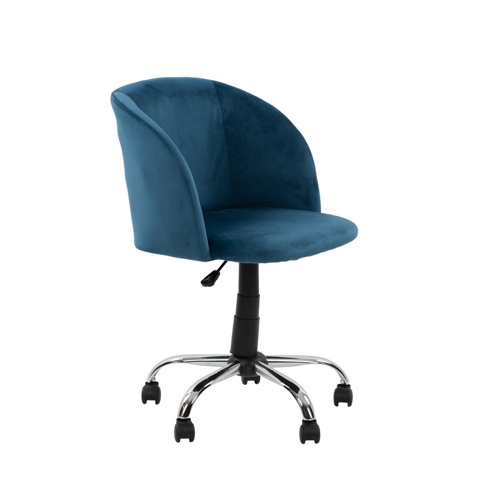 Rondo καρέκλα γραφείου σε βελούδινο ύφασμα μπλε απόχρωσης και μηχανισμό up down. Ιδανική για το home office σας.
